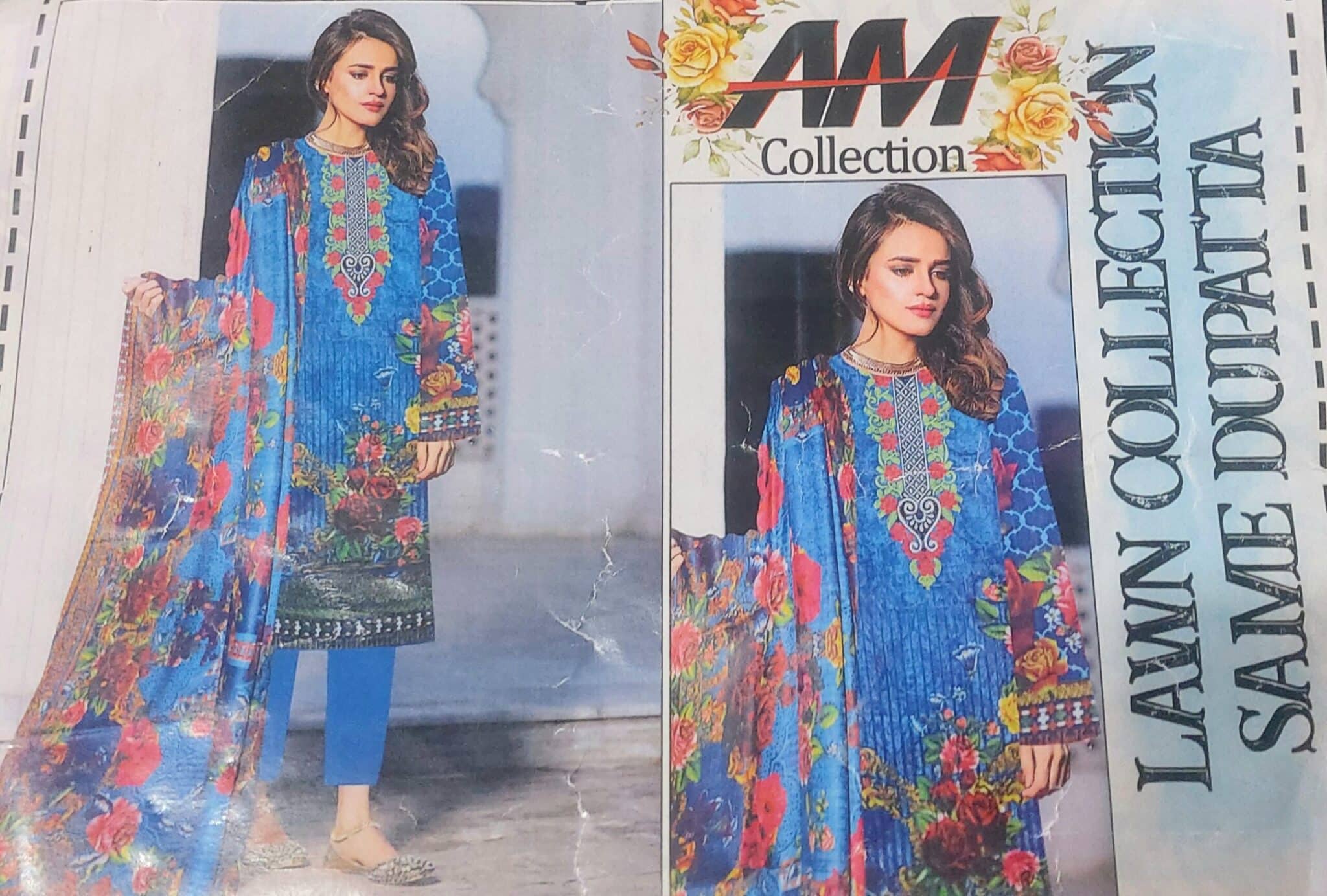 AM COLLECTION LAWN COLLECTION SAME DUPPATA BLUE -3 PCS Replica
